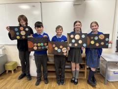 We have learned s much in our research into space this week. We created art mastepieces of teh planets in teh solar system after our visit to the Wonderdome. We used Oreos tto look at planets and moons and even completed work on the zodiac and completed reports in English. What a great week.