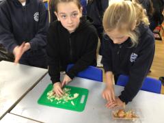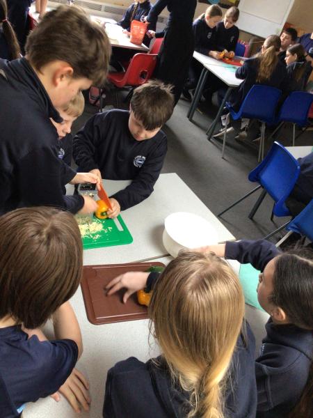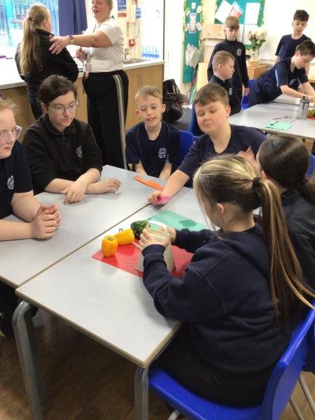 In DT in Year 6 we have been learning how to prepare a full 3 course meal! We made stuffed peppers, chicken curry and Eton mess. It was delicious 🫑 🐔 🍛 🍓 🍨